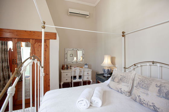 A spacious room furnished with an antique four-poster queen bed, complete with TV and Netflix, air conditioning, and heating for year-round comfort. The modern en-suite bathroom features a stunning walk-in shower. With the convenience of external access, this room is especially well suited to guests travelling with pets.